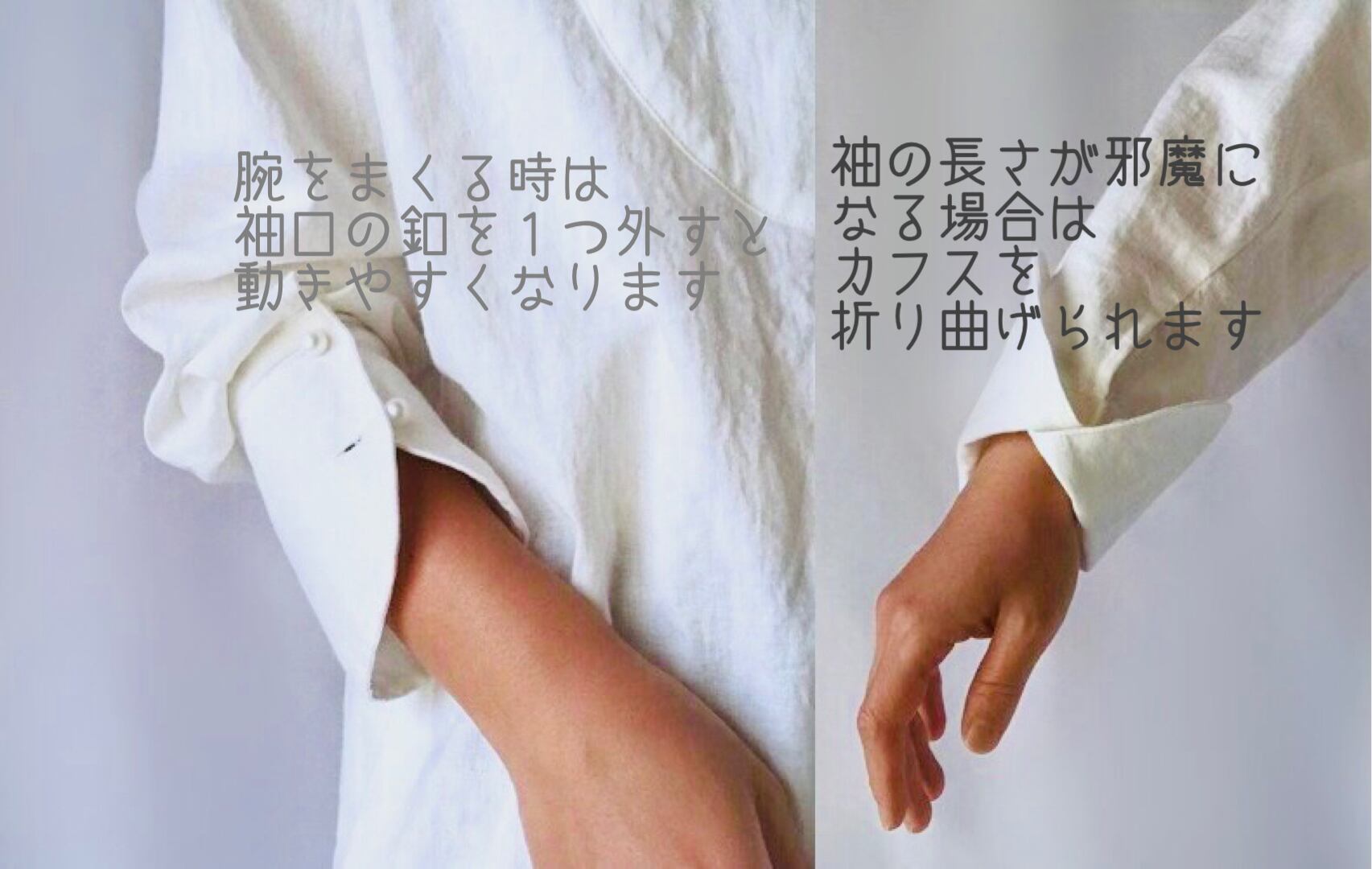 袖口の開きを前側にしてカフスの丸みが見えるようにしました