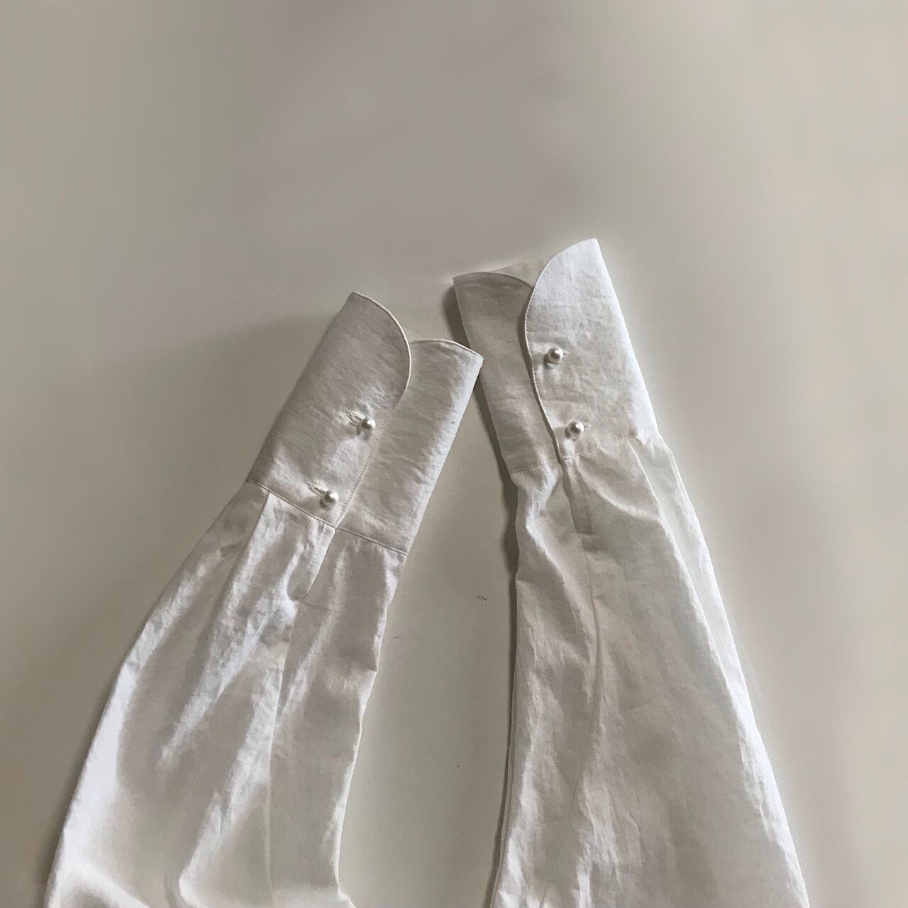 袖口の開きを前側にしてカフスの丸みが見えるようにしました