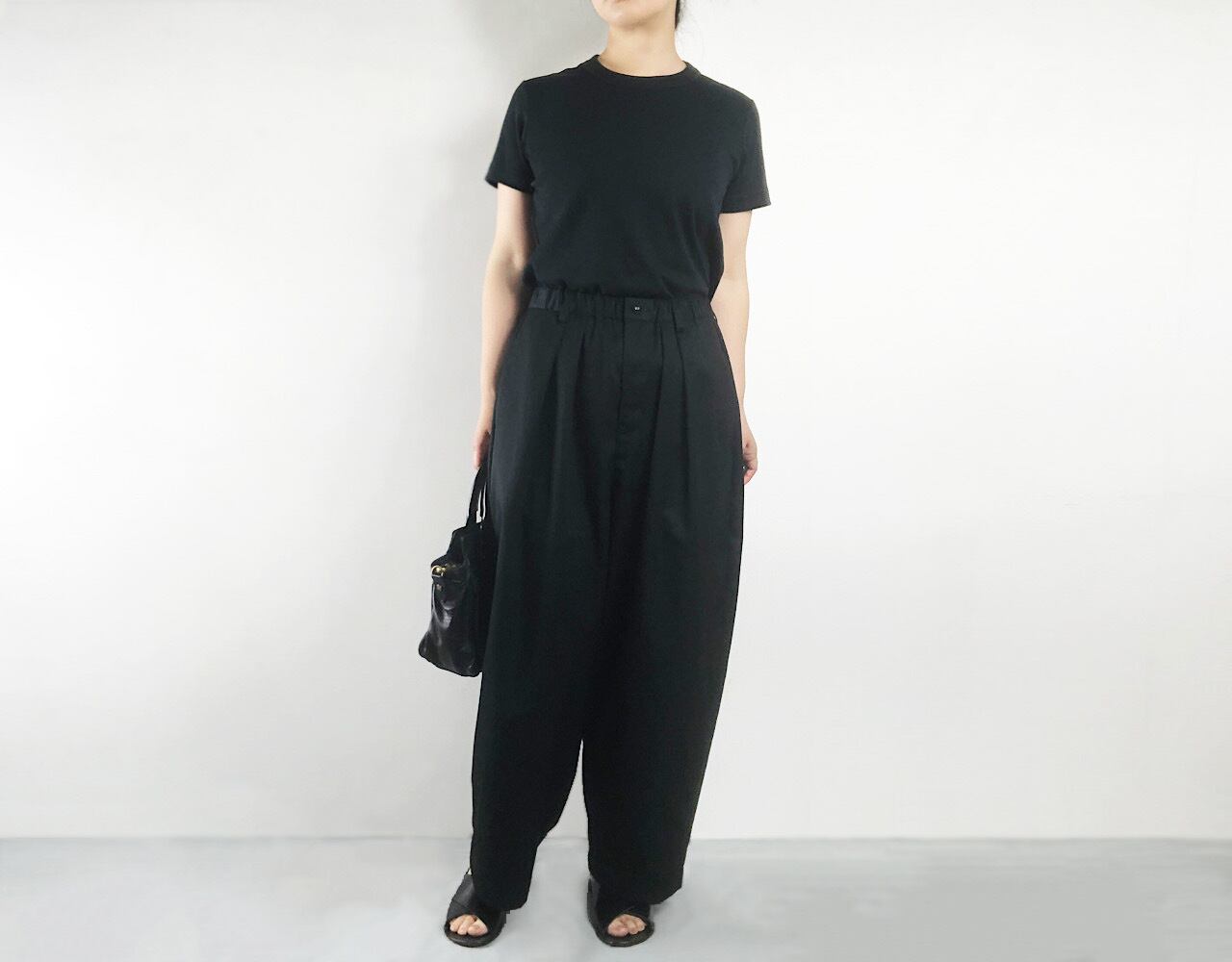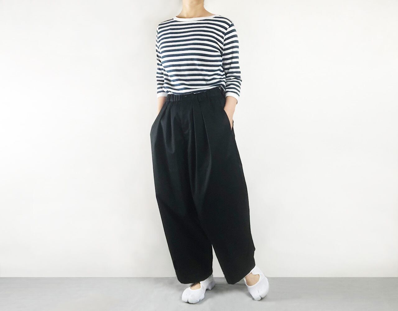 脇の丸みが特徴的な立体シルエットのボリュームワイドパンツ