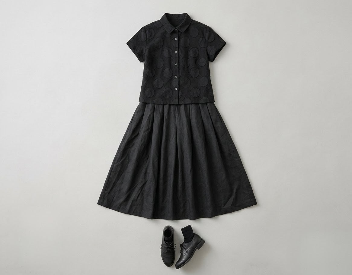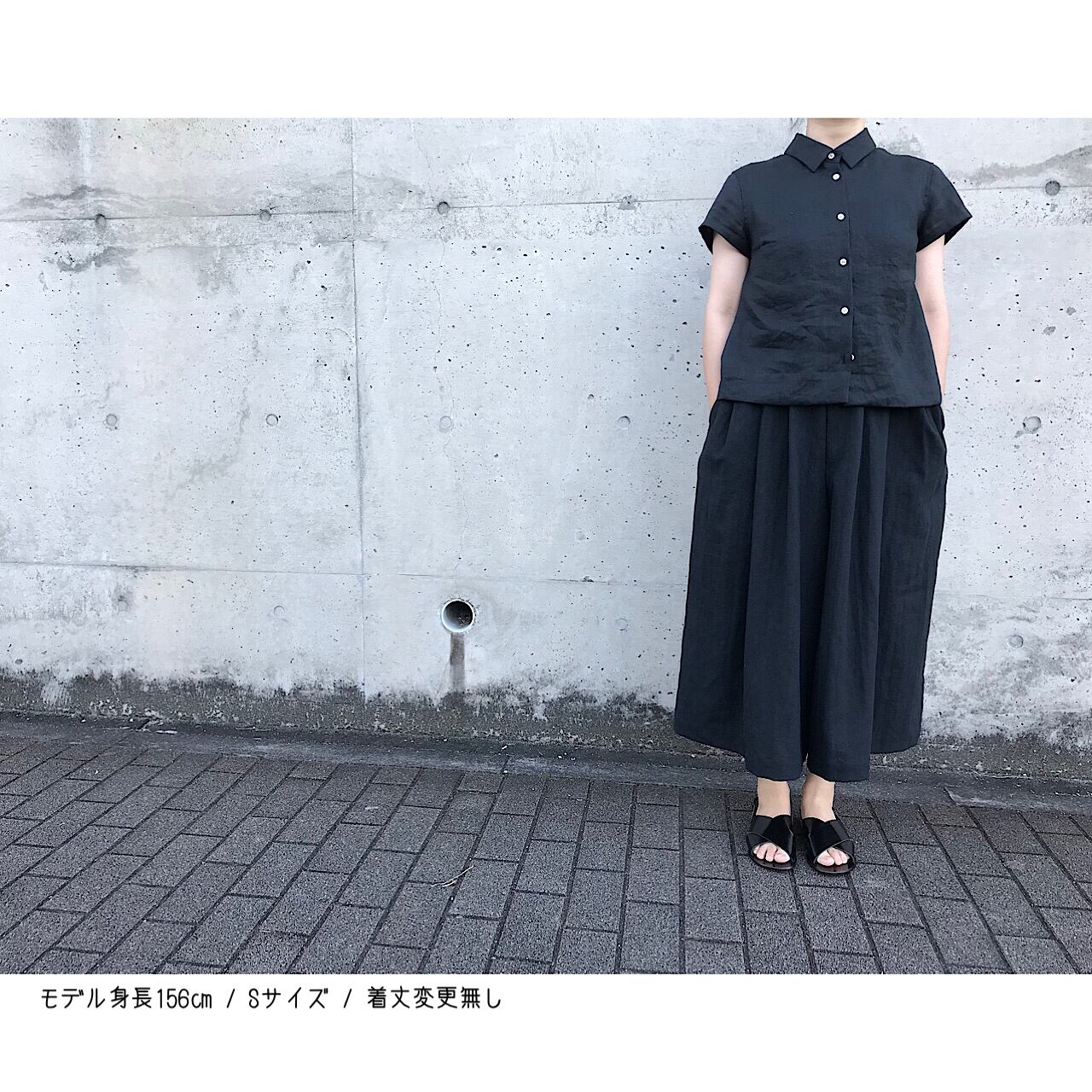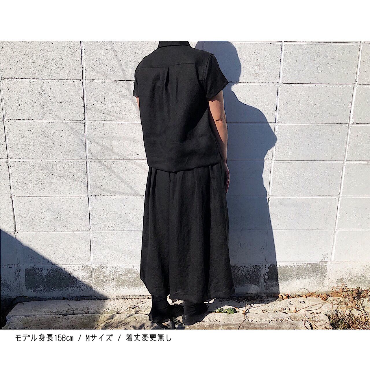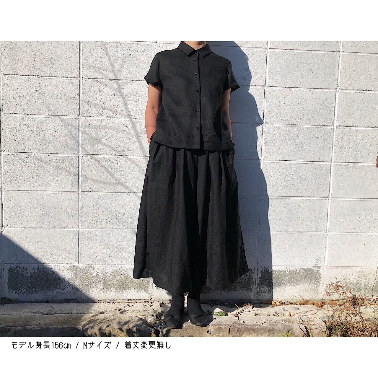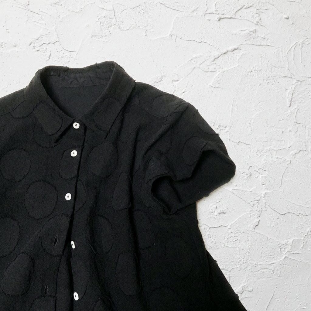 ドットジャガードの四角い半袖シャツ / コットンリネン / ブラック